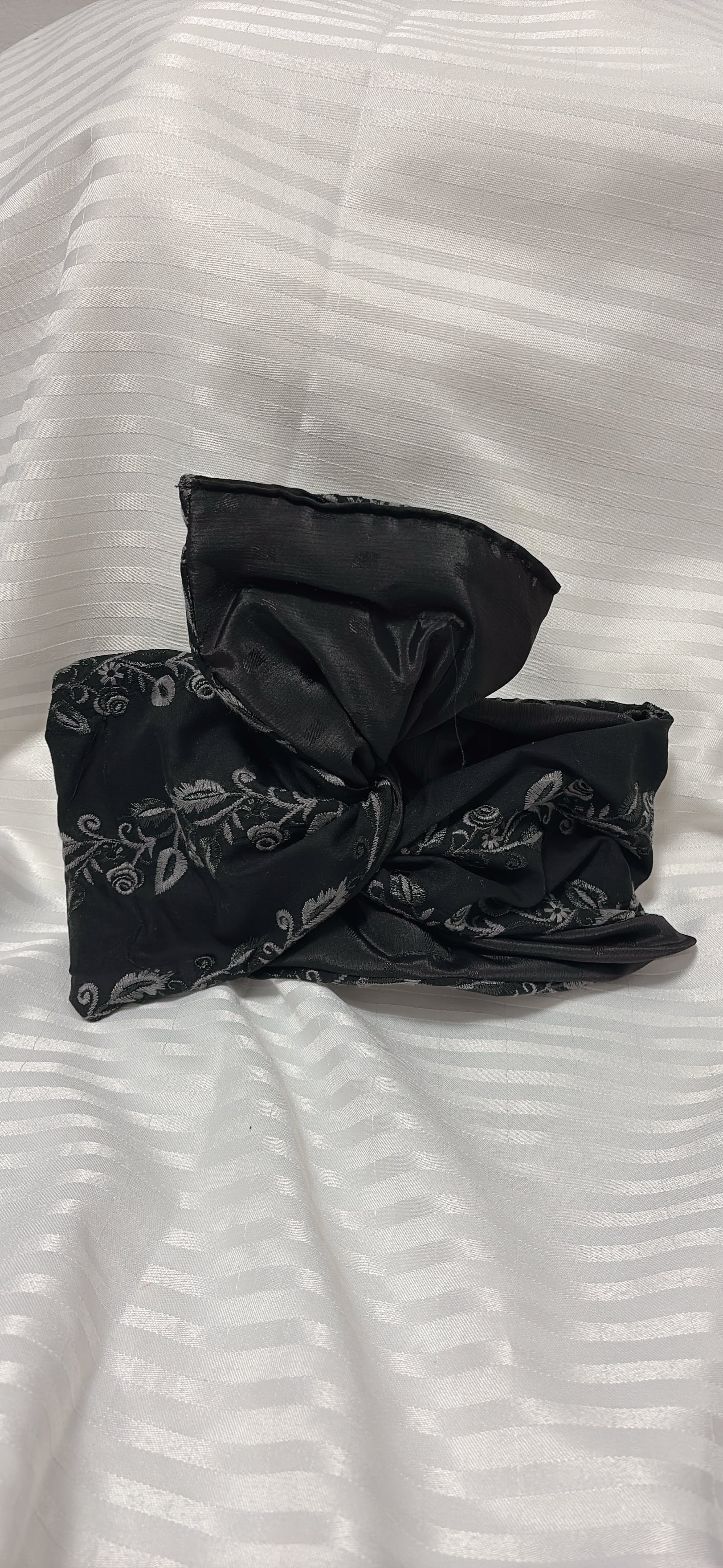 幸せのターバン【グレー刺繍ブラック】