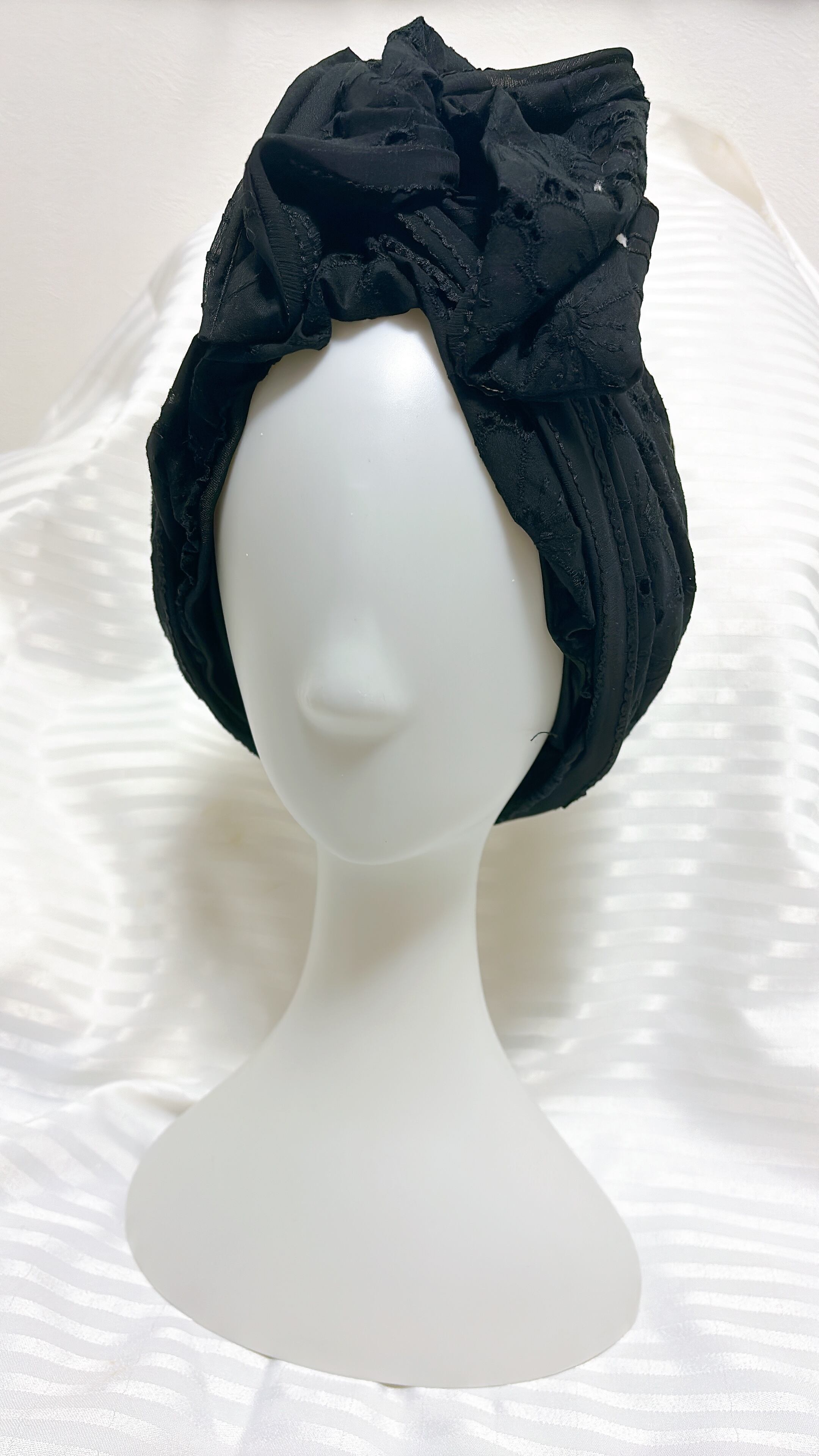 幸せの帽子ターバン【黒の刺繍】